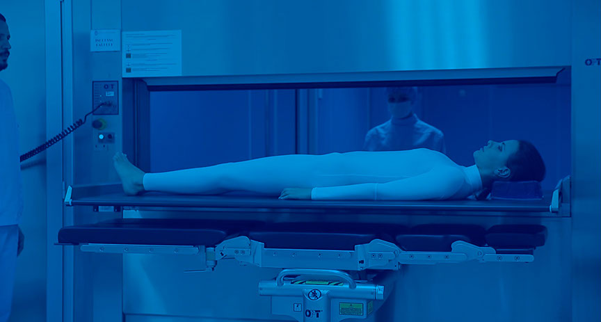 El paciente está protegido por un par de sensores infrarrojos situados en los costados de la barra de transferencia, que hace de barrera anti-caída en caso de error de usuario.
